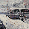 "As achromatic goes, these paintings are actually quite colorful!  The surface is rich in layers of thick color and texture that pop through, enlivening the action of the paint and environment it represents. Each panel functions as a storyboard from a singular neighborhood snow event from my childhood that plays off each other as a triptych, but they are also wonderful individual narratives too and can be purchased separately. The color pops enhance the sense of livly discovery under the snow. Where I come from, a snow day like this might only last 24 hours before it melts away. It is a magical reminder of how fast the world changes and how fast we grow up. Do you remember a big snowfall from your early childhood? The excitement of the day? The newness of the world?