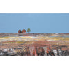 In this captivating artwork, Loretta Kaltenhauser beautifully expresses her deep love for open spaces, peace, and solitude in this abstract landscape. The interplay of the rich rust-colored home along with the deep blue sky and terrain evokes a serene rural tranquility.